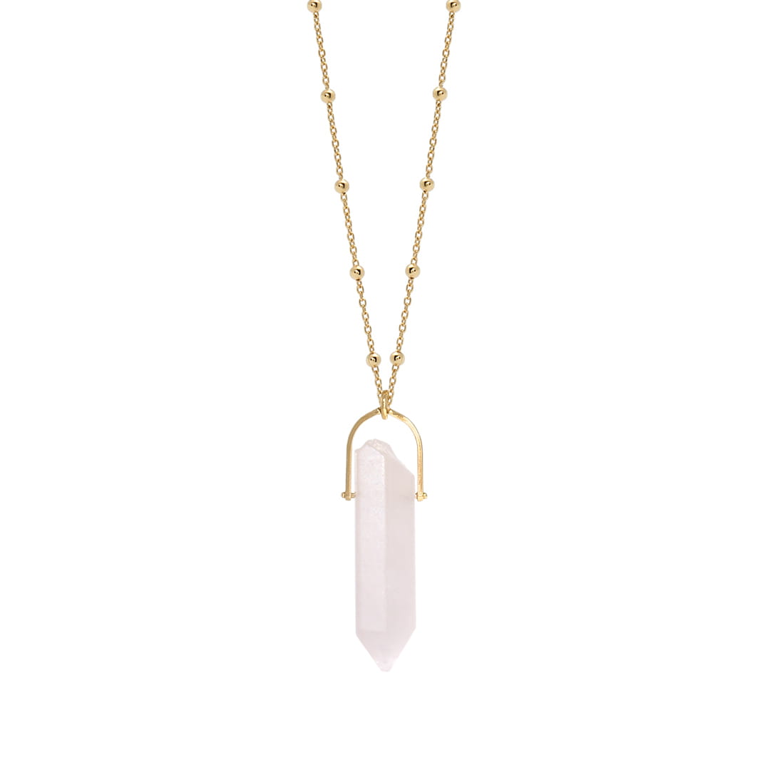Złoty Naszyjnik Różowy Kwarc Oprawa MAGIC